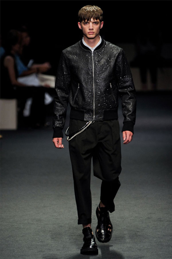 Neil Barret plays with classic menswear prints for Spring/Summer 2012. From houndstooth to Prince of Wales checks to stripes and chevrons, Neil Barret manipulated these familiar patterns in amazing ways to update and to challenge conventional menswear. The resulting looks are graphic interpretations for the modern man. Lots of mixed media/hybrid pieces to covet in this collection as well.